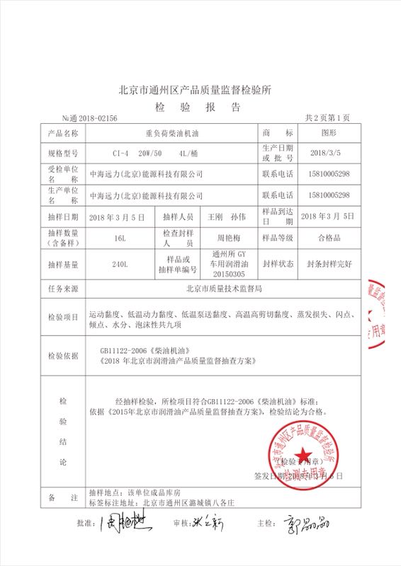 北京質量監督局抽檢重負荷柴油機油報告